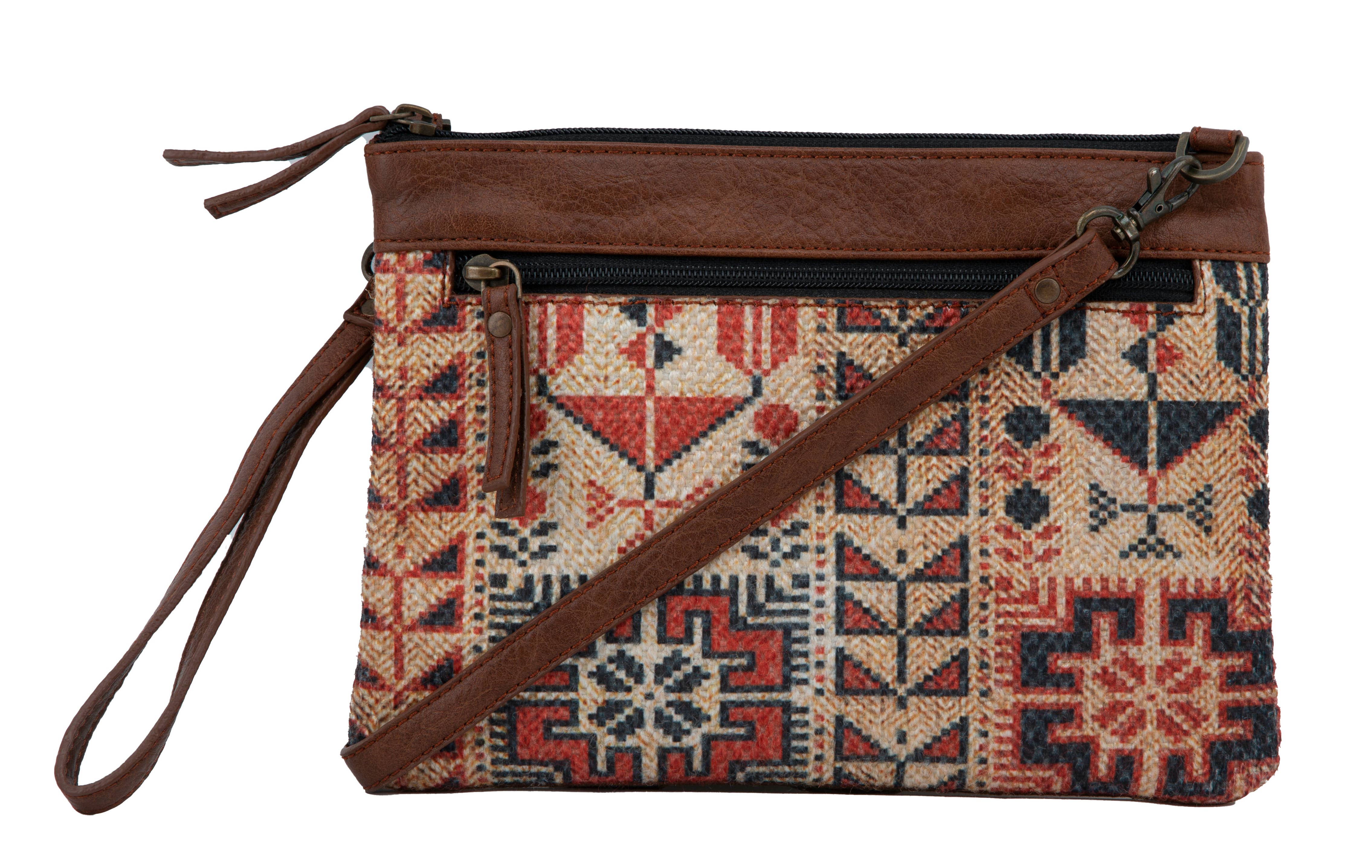 The best little run-around-town crossbody with a beautiful fall print. Includes a wristlet strap and crossbody strap to easily covert from purse to cosmetic bag.