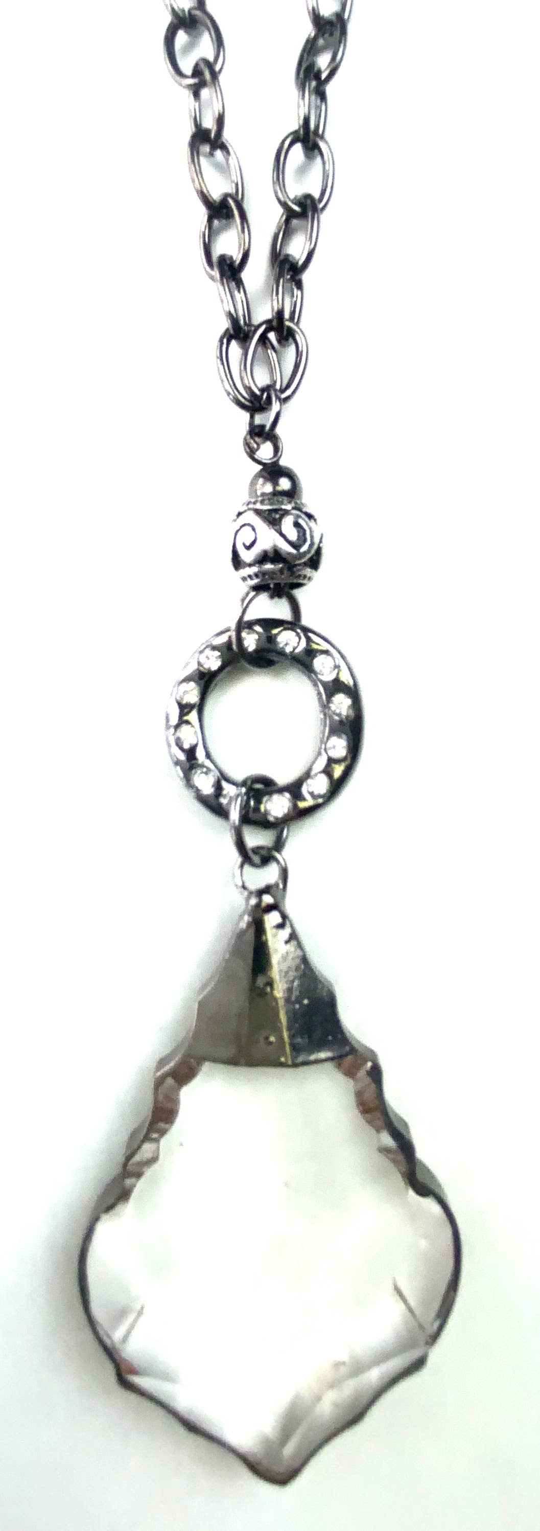 Discover a new level of elegance with the Marnie Faceted Glass Pendant from Lost & Found Trading. Antique silver in color with clear pendant.