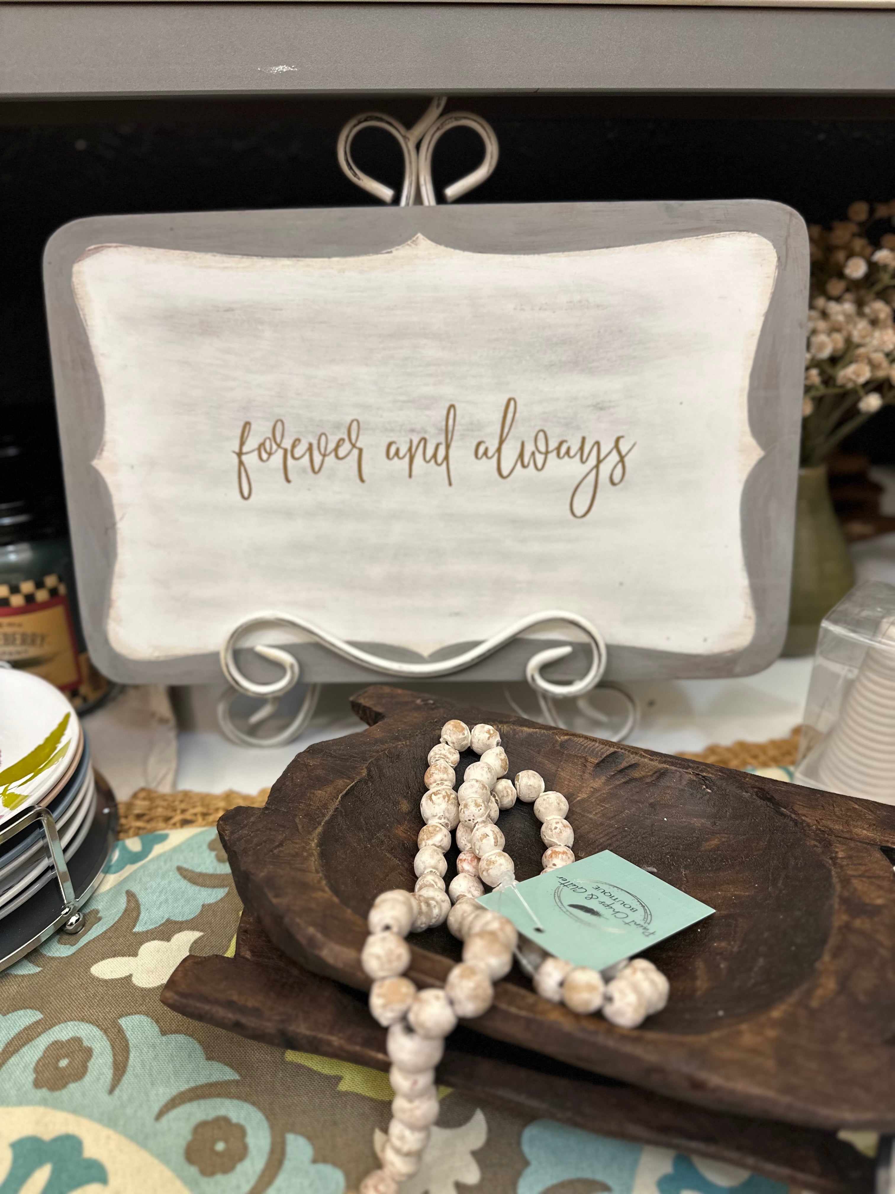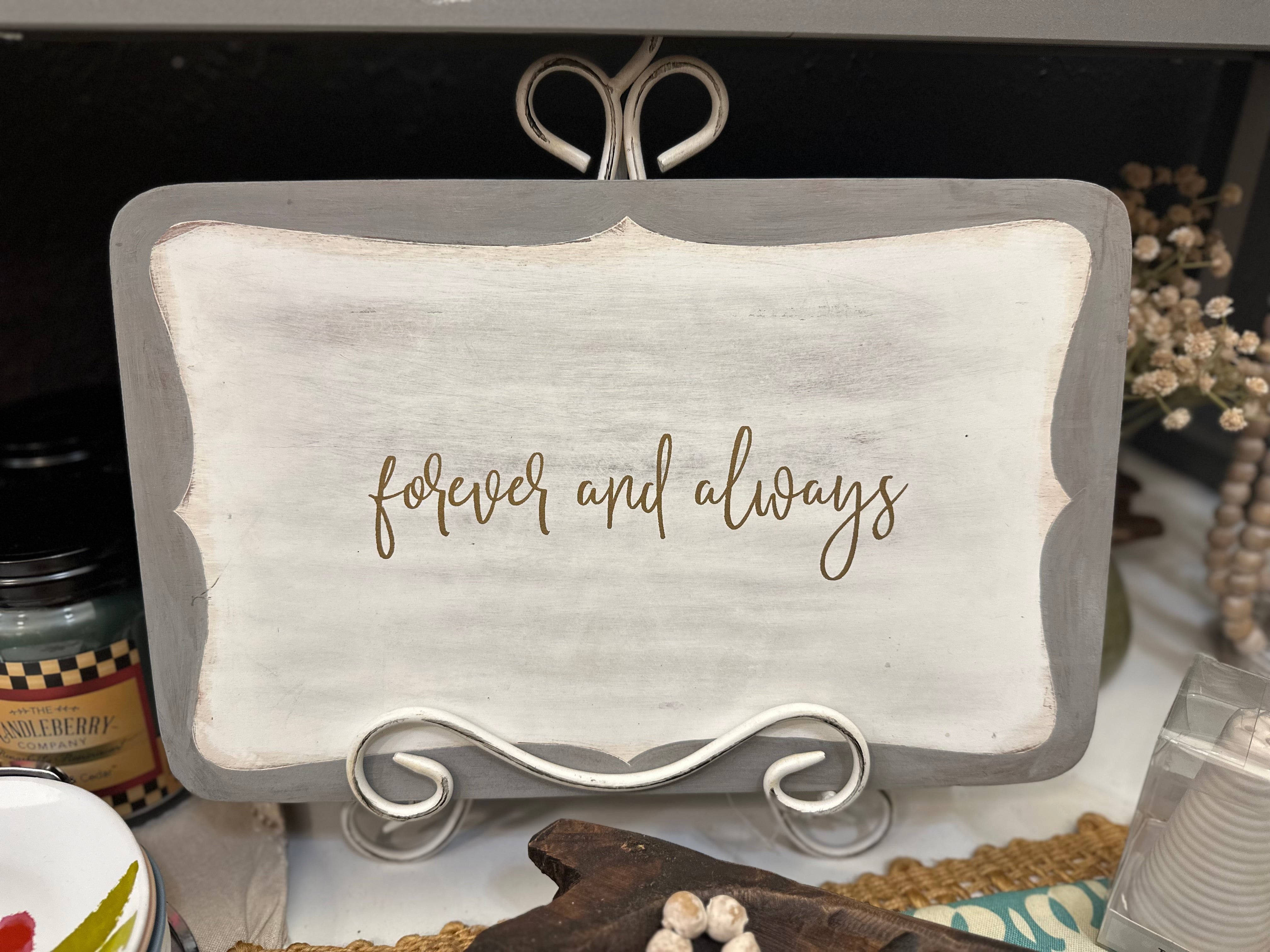 Our Forever & Always Board can be displayed on an easel or used as a centerpiece. The back has non-slip pads for table use also! Have a bride and groom in your life? We found the perfect gift for their big day.