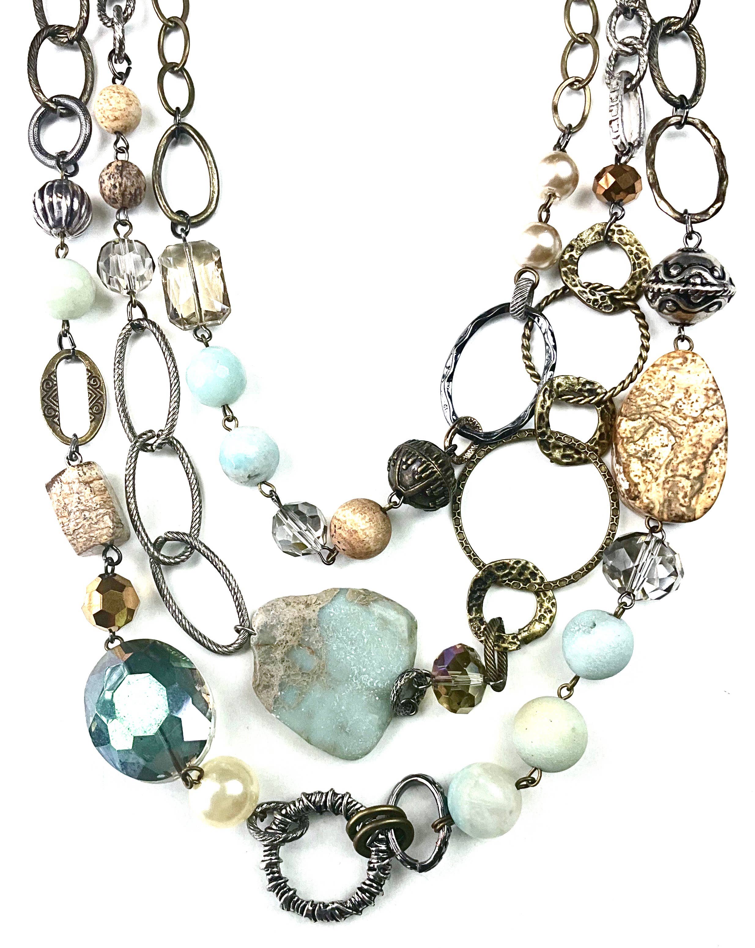 The Triple Chain Statement Necklace will make a statement for every outfit. The chunky chain and mix of oversized stones create a bold look.