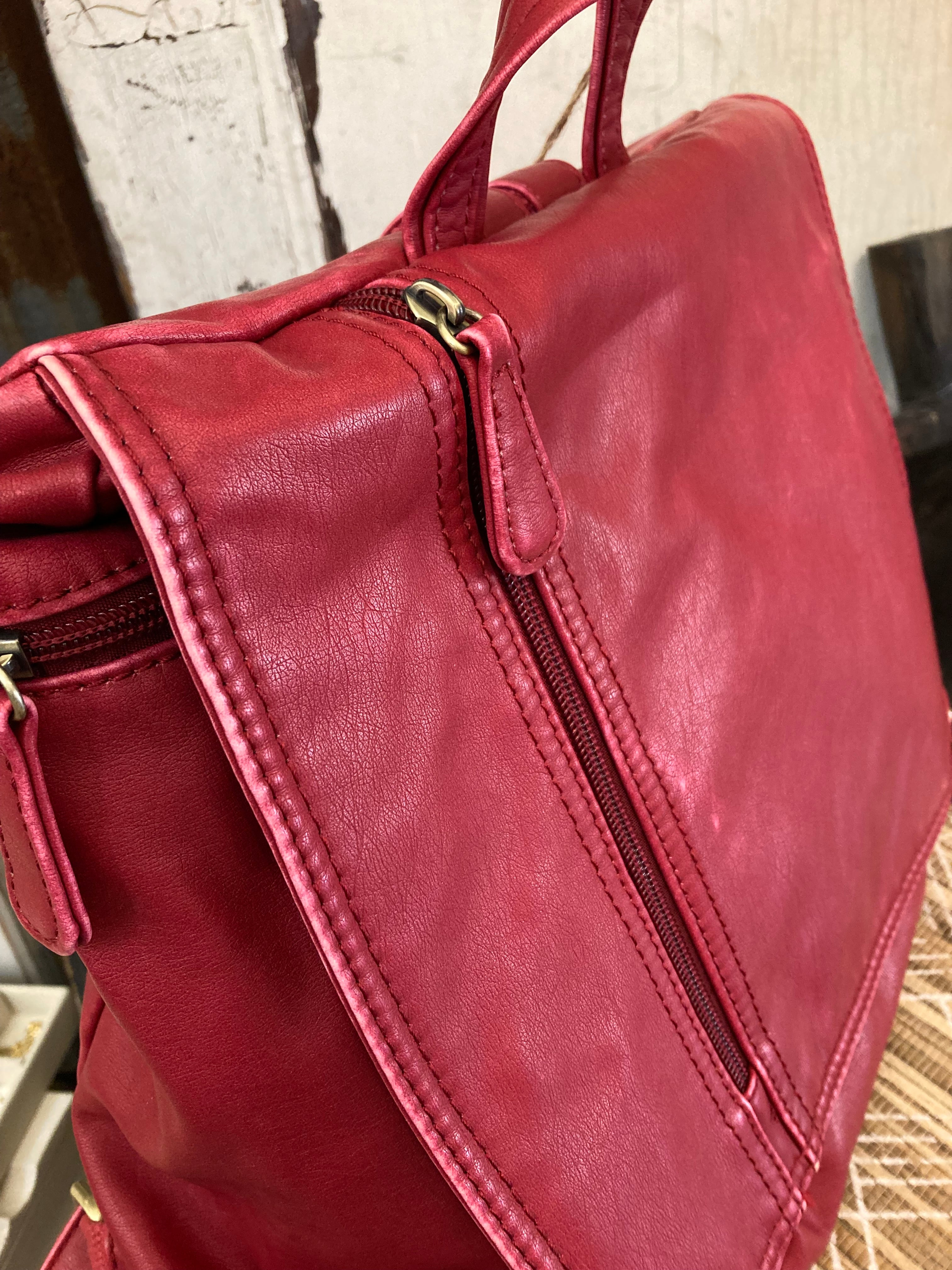 For the backpack style purse lovers ~ This one is for YOU! It has a modern, boxy design with a flap closure for a sleek and polished look. It's crafted from durable vegan leather that is soft and has a gorgeous aged look. Perfectly placed exterior zippered pockets ensure quick access to your essentials while on the go. * Adjustable straps and a top handle offer versatile carrying options for daily convenience.